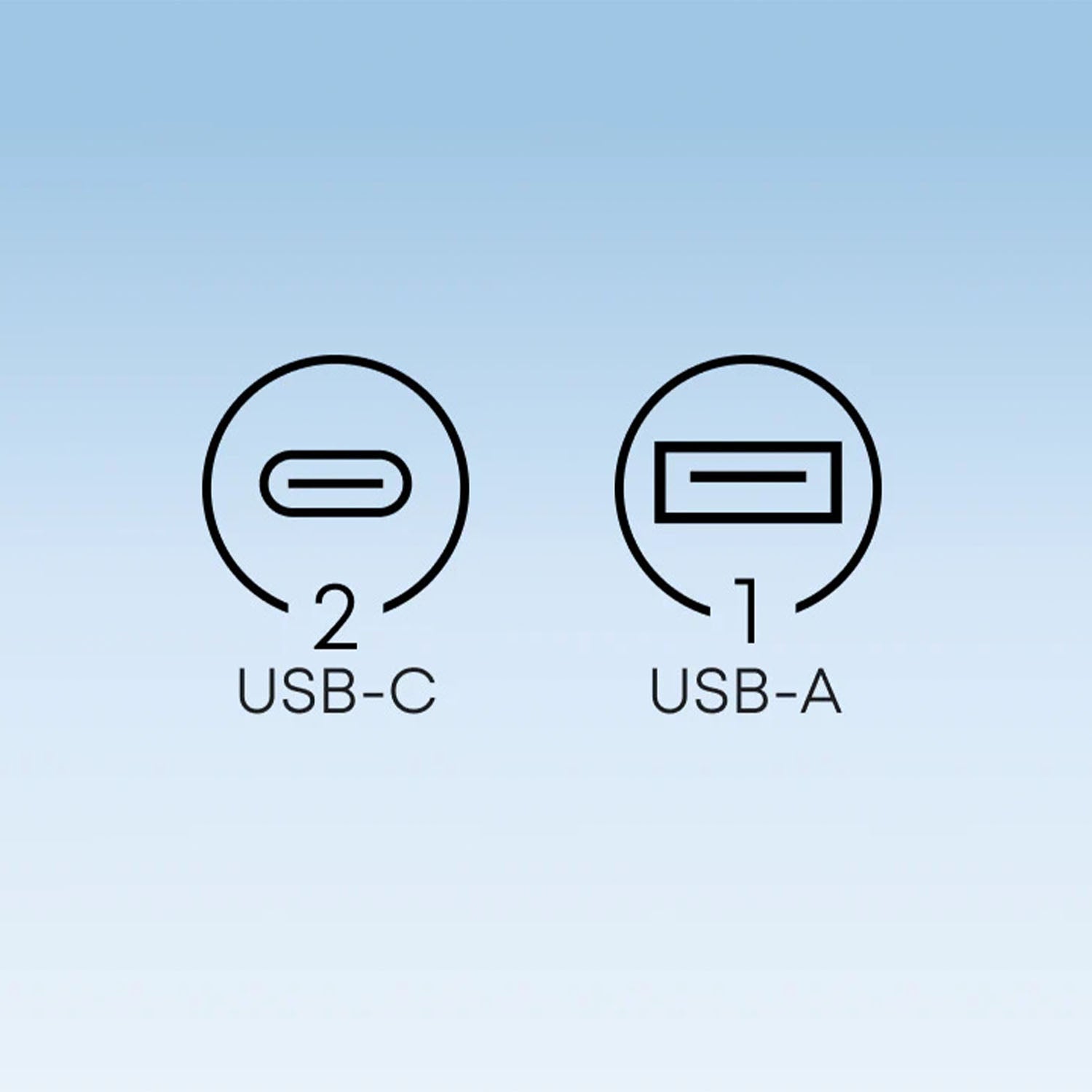 | Multi-Port Power Distribution | USB-C1 + USB-C2: 45W + 22.5W / USB-C1 + USB-A: 45W + 22.5W / All 3 Ports: 45W + 7.5W + 7.5W |