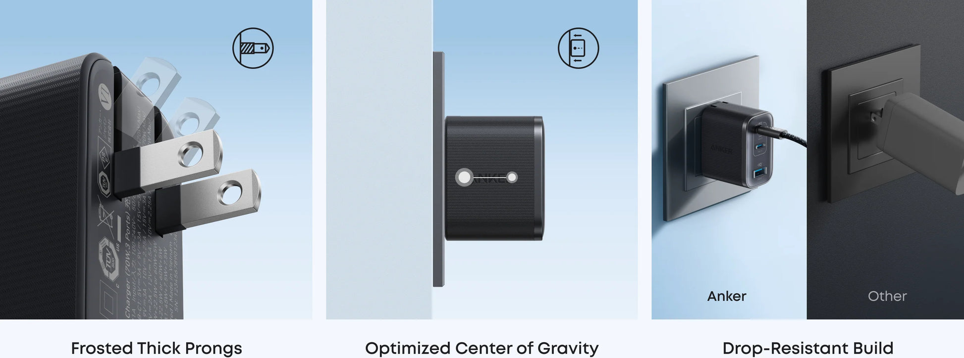 Anker Nano Charger (70W, 3 Ports) Wall Charger A121A – Compact High-Speed Fast Charger